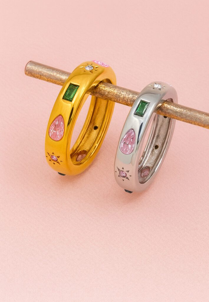 Playful yet elegant, this ring’s unique waterdrop stone adds a burst of colour and personality. It’s an ideal small gift — easy to style, eye-catching, and finished with a tarnish-free shine that makes it feel far more expensive than its price tag suggests.