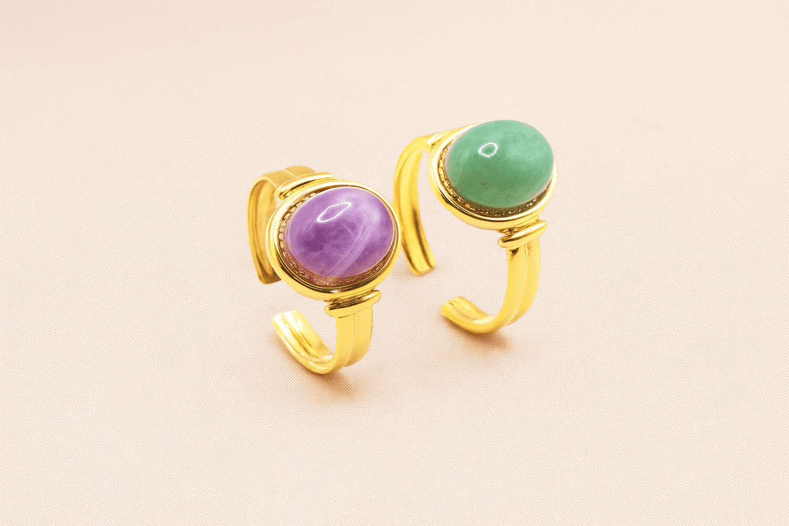 Elevate your everyday look with our Gold Adjustable Gemstone Ring, designed to bring a pop of colour and timeless elegance to any jewellery collection. Choose from two beautiful natural stones — a rich green gemstone or a striking purple stone — each offering its own unique charm and character.