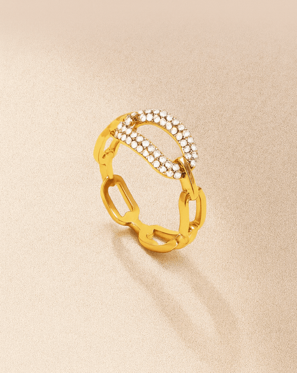 A timeless gold zircon link ring designed to elevate your look with confidence, sparkle, and lasting shine.