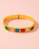 Make a bold statement with the Multi-Coloured Gem Bangle, a vibrant piece that radiates luxury and confidence. Featuring large, multi-coloured zircon stones set on a chunky gold band, this bangle adds the perfect pop of colour to any look.