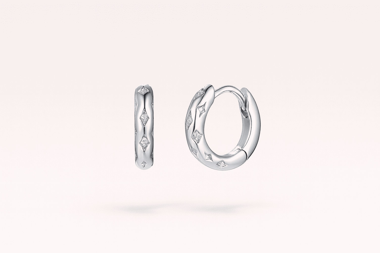 A refined pair of star zircon huggie earrings designed to bring celestial sparkle, versatility, and everyday luxury to your jewellery collection.