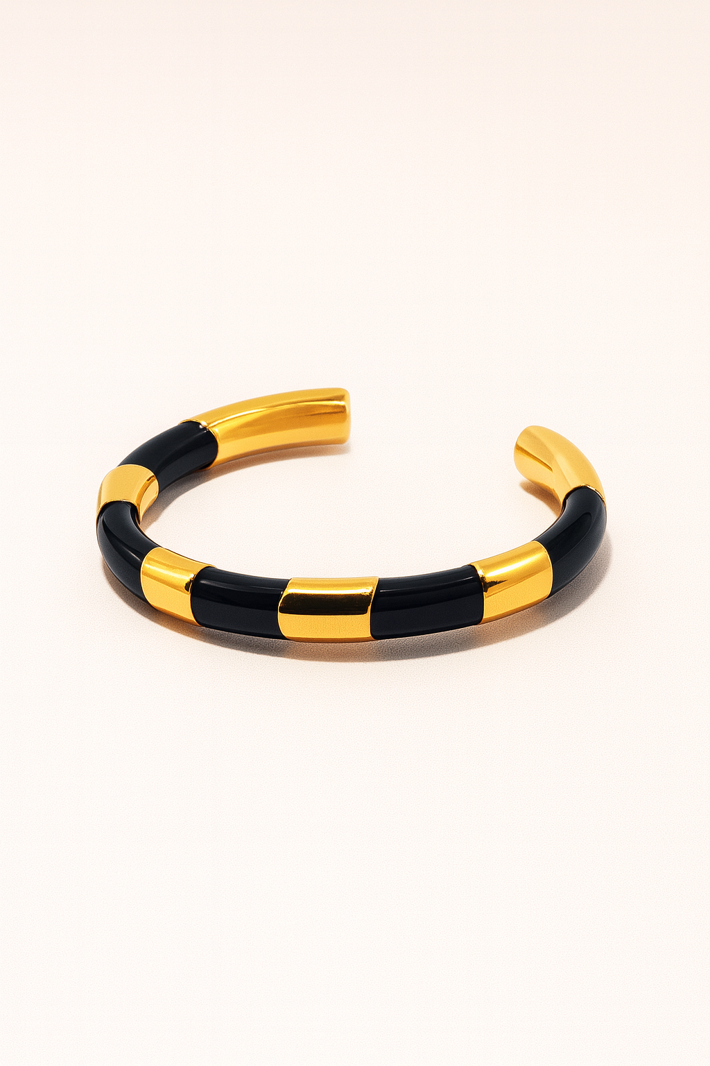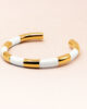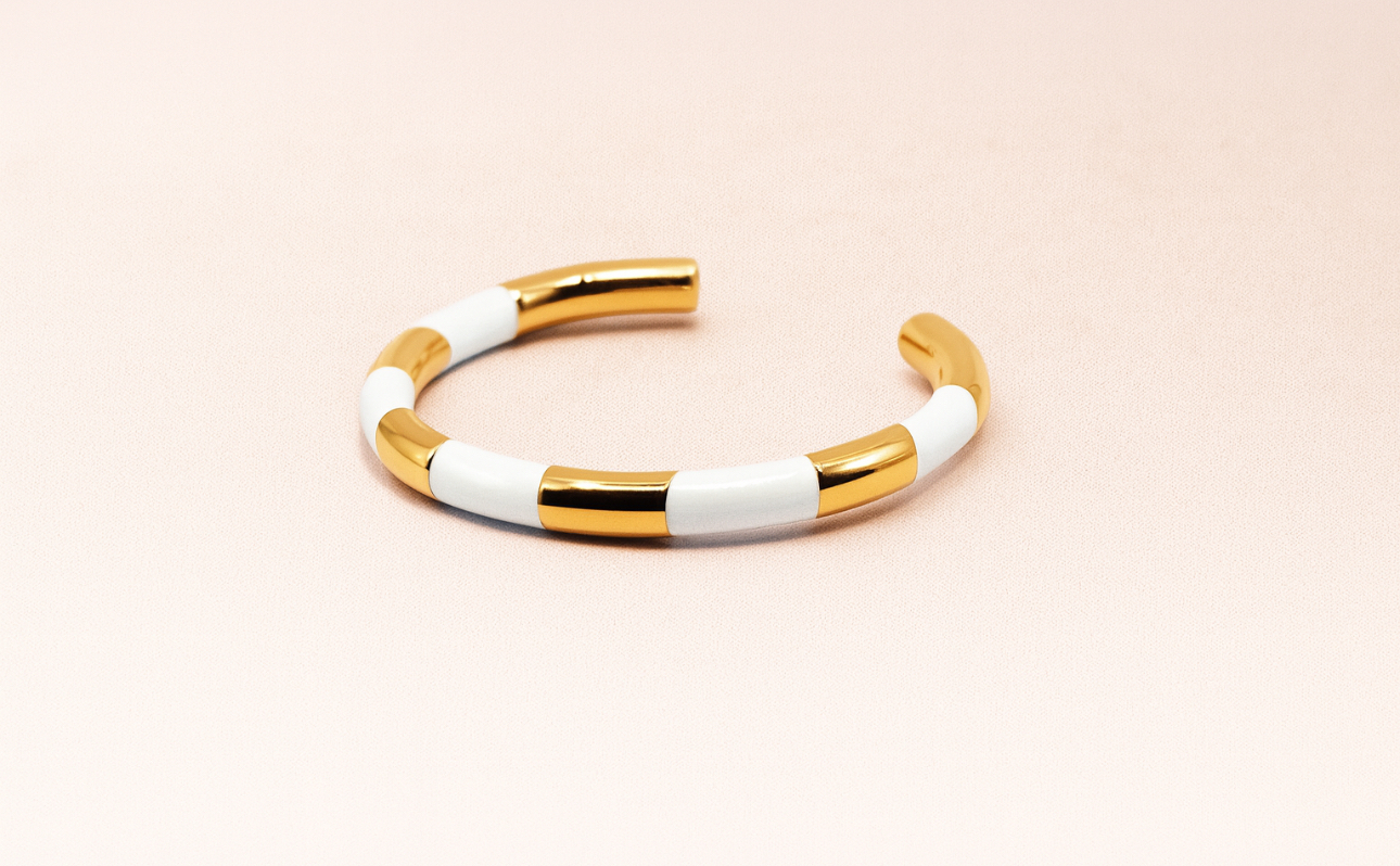 This elegant Bangle is perfect for those who love stylish and sophisticated fashion accessories. With its pristine white or black and gleaming gold design, this bangle is sure to attract compliments wherever you go.
