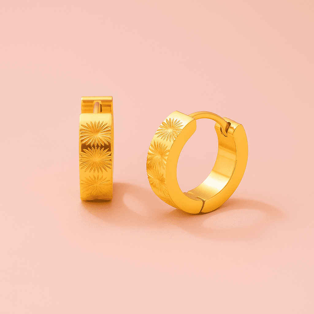 Sun Embossed Hoop Earrings – Stainless Steel Gold