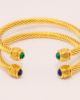 Introducing our Twist Pave Patterned Natural Stone Bangle – the perfect addition to your fashion accessory collection. This bangle is made of high-quality stainless steel with an 18kg gold twist and features a stunning natural blue stone that will catch everyone’s eye.