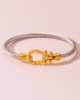 Elevate your everyday style with the Twisted Silver & Gold Zircon Bangle, a striking blend of texture and shine. Featuring a two-tone twisted band in silver and gold with a textured link design, this bangle is adorned with sparkling zircon stones for an elegant touch of glamour.