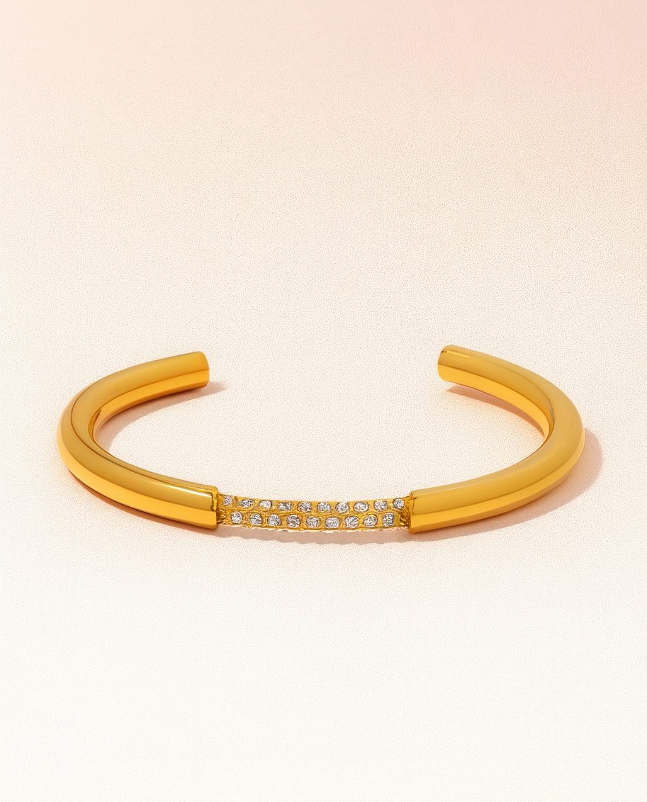 Add effortless sophistication to your wrist with our Zircon Cuff Bangle, a sleek and timeless piece designed to elevate any look. Crafted from high-quality stainless steel and adorned with sparkling clear zircon stones, this bangle combines modern elegance with everyday practicality.